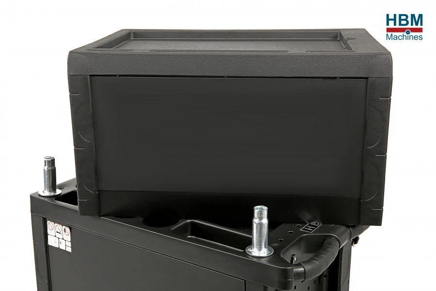 Deze gereedschapskast van HBM is voorzien van twee handgrepen en er worden twee pinnen bijgeleverd. Hierdoor kan de gereedschapskast vastgezet worden op de HBM Gevulde Gereedschapswagen. Voor iedere professional is deze opzetkast zeer gewild in de werkplaats. De kast heeft een gewicht van 27,5 kilogram en een afmeting van 690 x 470 x 400 millimeter. De binnenafmetingen van de laden bedraagt 545 x 390 x 50 mm en de kast is gemaakt van stevig metaal.