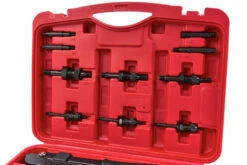 De basis van de tang bestaat uit metaal, waardoor hij erg duurzaam en sterk is. Hij gaat dus lang mee, ook als je er intensief mee werkt. De handgrepen zijn anti-slip en je krijgt de set in een stevige koffer om mee te nemen. Deze koffer beschikt zowel in het deksel als in de bodem over aparte compartimenten, waar de tools perfect in passen. Een geïntegreerd handvat en een dubbel plastic slot maken het ten slotte nog gemakkelijker om de set mee te nemen en veilig op te bergen.