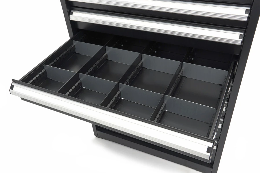 Deze zeer stevige professionele gereedschapskast is bedoeld voor de professionele werkplaats, maar is ook geschikt voor de serieuze doe-het-zelver. De acht ruime laden bieden veel opbergruimte voor gereedschap en onderdelen. De kast wordt geleverd met een los bovenblad met opstaande rand dat dienst kan doen als werkblad. Kom je nog ruimte tekort? Dan kun je er ook nog een bovenkast op plaatsen. De kast is er stevig genoeg voor.