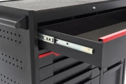De gereedschapswagen biedt slimme organisatie met zijn 12 stevige laden, die zijn uitgerust met automatische terugkeermechanismen. Hierdoor houd je al je gereedschap netjes geordend en binnen handbereik. De centrale vergrendeling zorgt voor extra gemoedsrust.