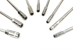De ergonomisch gevormde handgrepen van de dopsleutels in deze set zorgen ervoor dat je de sleutel makkelijk kunt draaien. Je hoeft er dan ook niet veel kracht bij te gebruiken, wanneer je te maken hebt met lastige bouten of moeren. Bovendien zijn de handvatten voorzien van een antislipprofiel, zodat ze stevig in de hand blijven liggen. Alle dopsleutels passen perfect in de uitsparingen van de meegeleverde kunststof blister. Maar je kunt de dopsleutels ook ophangen, want in de T-greep zit een oog. Deze kan je ook gebruiken om nog net een beetje extra kracht te zetten.
