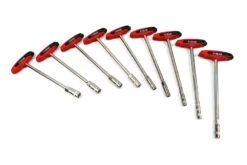 Met deze handige HBM 9-delige T-greep dopsleutelset, soksleutelset kan je de meeste bouten en moeren goed los- of vastdraaien. De set bestaat uit negen verschillende dopsleutels met T-greep. Dankzij deze T-greep kan je extra kracht zetten zonder dat je daar veel moeite voor hoeft te doen. De set zit verpakt in een heel stevige kunststof blister, zodat je je gereedschap netjes bij elkaar kunt bewaren.
