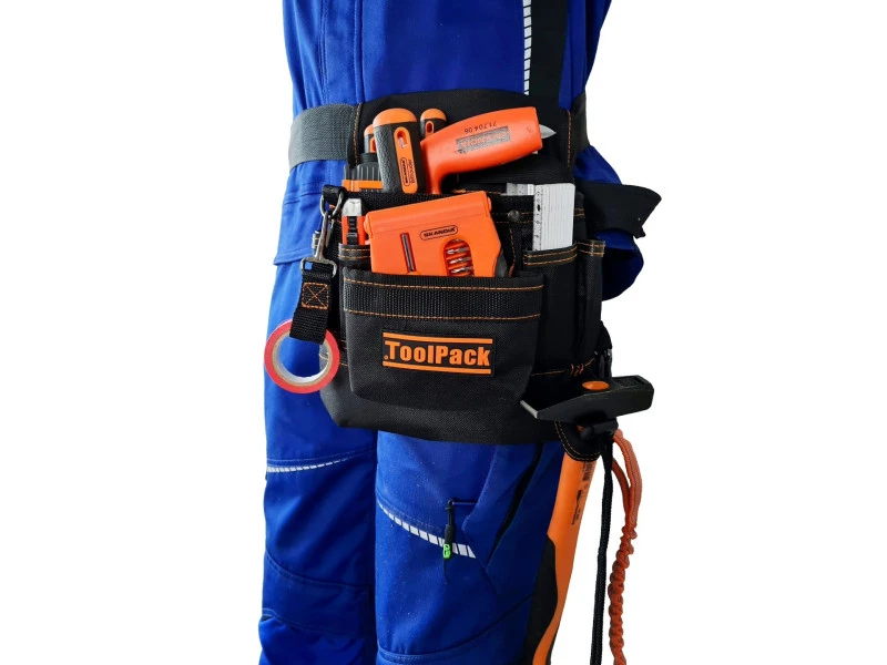 Het grote hoofdvak van de tas heeft 2 handige insteekvakken voor essentiële gereedschappen. Aan de voorzijde vind je 3 extra insteekvakken, 2 gesloten vakken en een ruim spijkervak voor nog meer opbergmogelijkheden. Met het slimme elastische gereedschapskoord kun je je hamer veilig aan de gereedschapshouder bevestigen, waardoor het risico op vallen wordt geminimaliseerd. Met de verstelbare 135×4,5 cm polyester tailleband met ABS snelontgrendelingsgesp past deze gordel bij de meeste lichaamstypes.