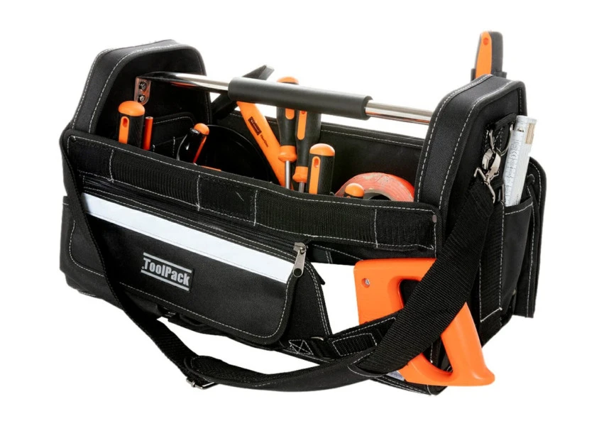ToolPack Robuuste Gereedschapstas, Metalen Draaghendel, Reflectiestreep, Afneembare Beschermkap, Verstelbare Draagriem